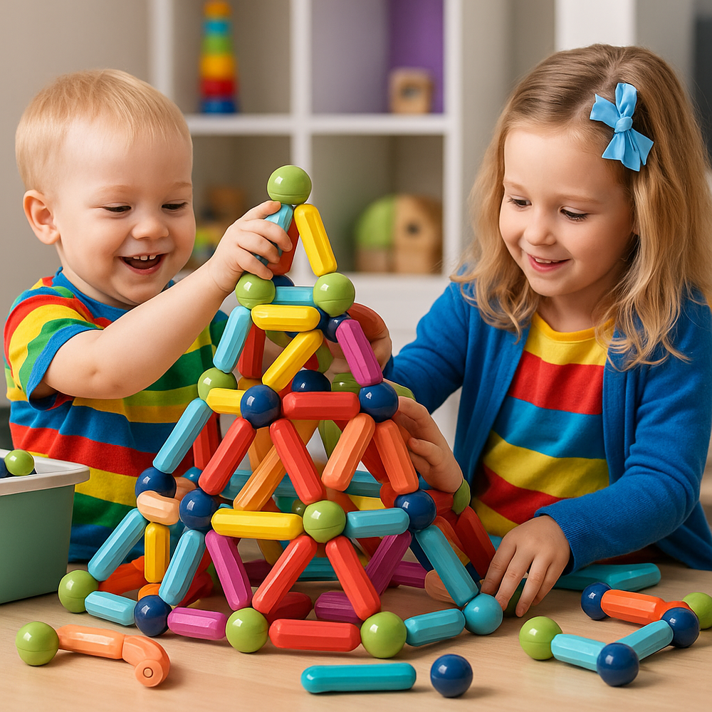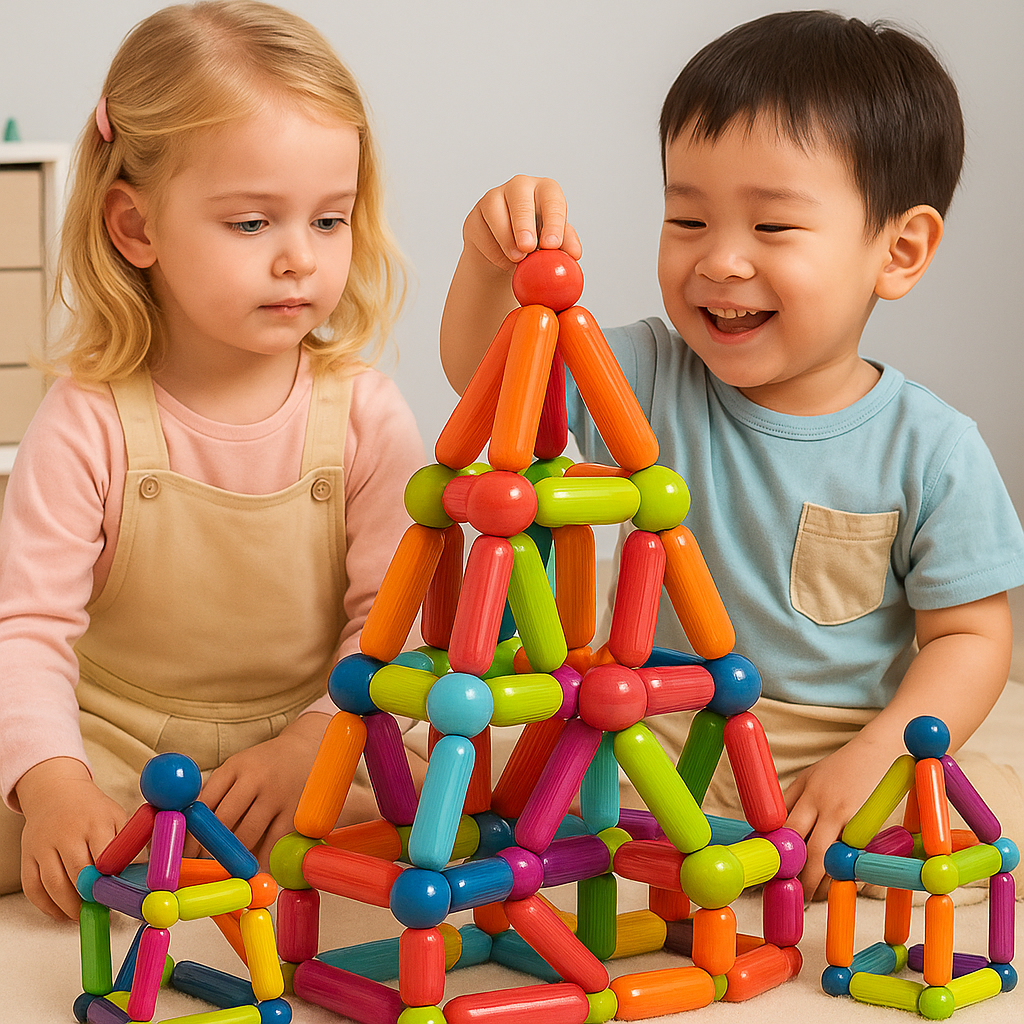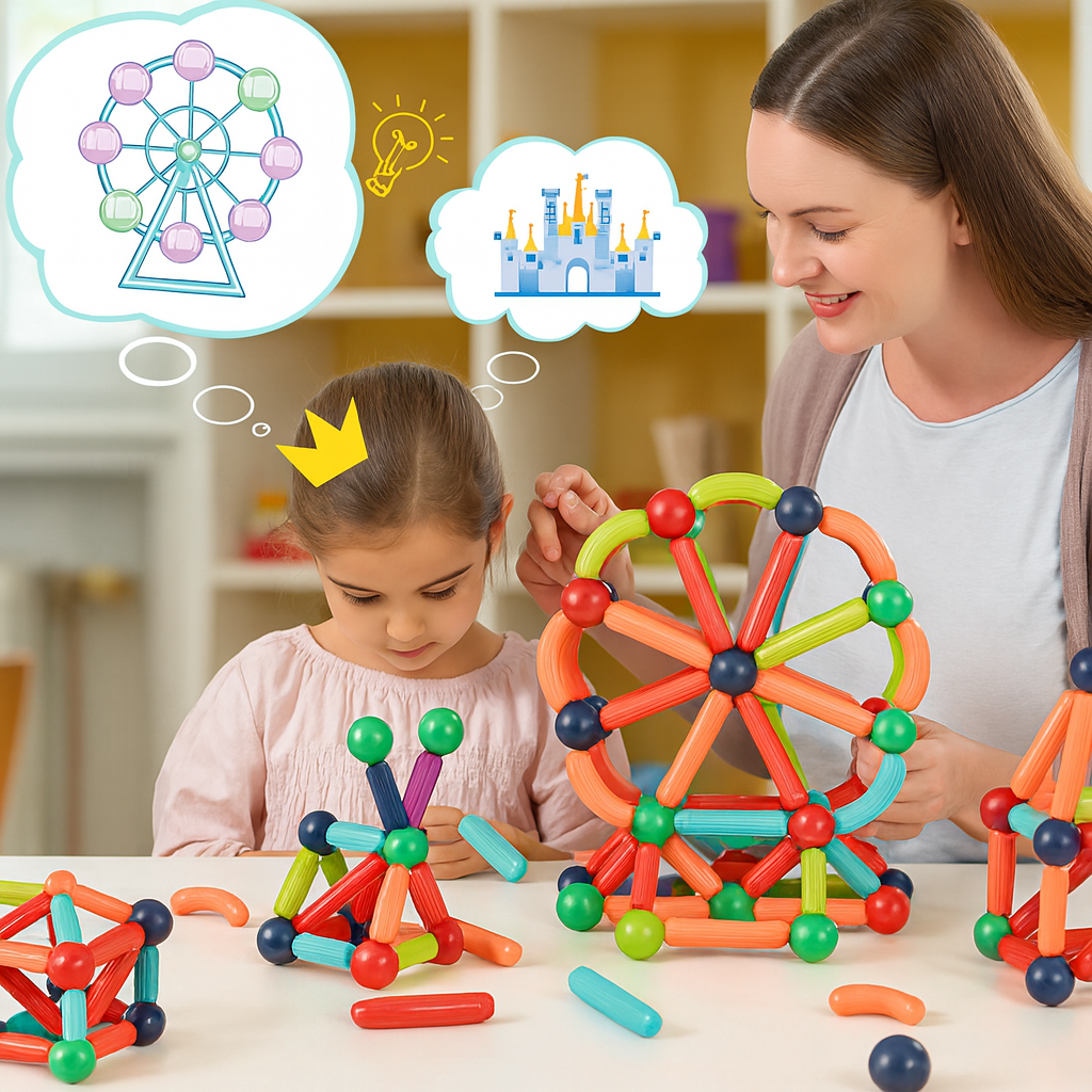 Con StickiBlocks, tu hijo puede construir, imaginar y aprender jugando. Cada pieza magnética se une con facilidad para crear mundos llenos de color y forma, alejándolo de las pantallas y acercándolo a la creatividad real.